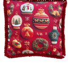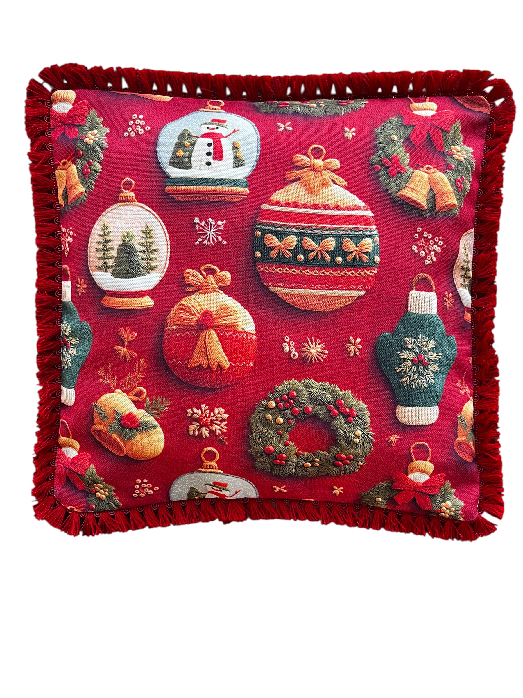 Yılbaşı Kırmızı Kar Küresi Top Saçaklı Çelenk Kırlent Kılıfı 40*40 cm Yeniyıl – Noel – Christmas